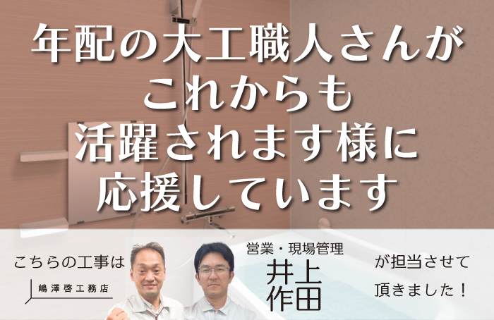 この度は数あるリフォーム会社の中から、弊社にご用命いただき誠にありがとうございます。担当の井上・作田へ信頼を寄せてくださり、私共も心より感謝しております。
