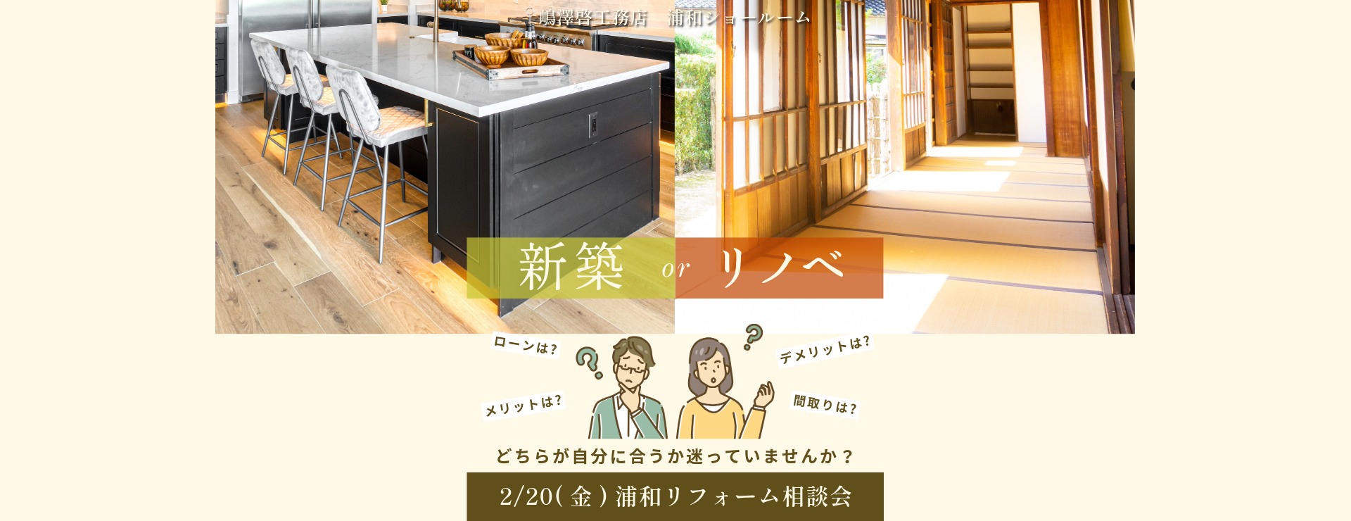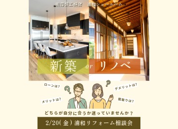 「年末年始に家族で将来の住まいを話し合ったけれど、次は何をすればいいの?」 そんなリフォーム検討初期の疑問を、住まいのプロ「一級建築士」が直接解決します。 2024年3月に大規模リニューアルした嶋澤啓工務店 川口ショールームにて、2日間限定の特別相談会を開催いたします。 │イベント開催概要 開催会場 嶋澤啓工務店 川口ショールーム 日程 2026年2月7日(土)・2月21日(土)時間10:00~12:00 / 13:00~17:00(完全予約制 5日前までにご予約ください) 費用 無料(一級建築士による個別相談) 特長 中古リノベ、間取り変更、二世帯化など大型改修に特化 【予約に関するご注意】 ご予約状況によりご希望に添えない場合がございます。予約フォーム送信後、お電話またはメールにて改めて確定のご連絡をさせていただきます。 │この相談会だからこそ「3つのメリット」 1. 「一級建築士」があなたのお悩みを無料で直接解決! 「理想の間取りは予算内で叶う?」 「中古物件を購入してリノベしたいけれど何から始めればいい?」 といった、リフォームの「やること」に関する不安を解消します。 ライフスタイルに合わせた間取り変更の提案 二世帯住宅へのリフォーム検討 中古物件リノベーションの概算費用シミュレーション 図面や写真をご持参いただければ、その場でより具体的なプランニングが可能です! 2. 四つのインテリアテイストを体感!リニューアルした最新ショールーム キッチンや浴室など計12台の最新水廻り設備を展示。 特に人気の北欧とインダストリアルの空間展示は必見です。 最新設備とインテリアが調和した空間をご覧いただけます フローリングや内装材の質感も、カタログではなく「実物」で確認できます 3. 「失敗しないリフォーム計画」を逆算で提案 リフォームには、商品の発注から納品まで平均1ヶ月かかるなど、意外と時間がかかります。3月・4月の新生活に間に合わせるための「一級建築士が教える逆算スケジュール」を、お客様の状況に合わせてご提示いたします。 │アクセス・ご予約方法 ★お車でお越しの場合 ショールーム前の駐車スペースにお停めください。 【今すぐ簡単予約】 完全予約制の為、当ページよりお申込みください。 イベント予約フォームはこちら▼