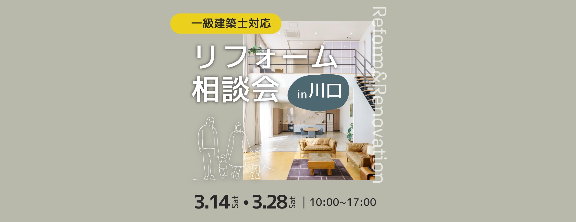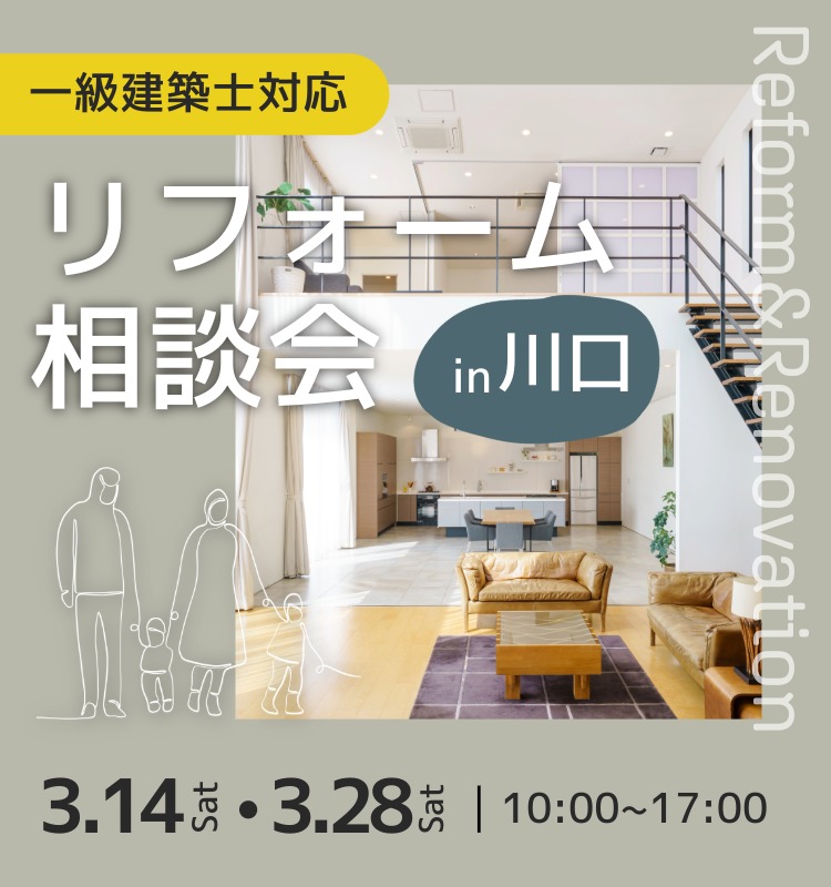「春からの新生活を前に、住まいの不便を解消したい。けれど、具体的に次は何をすればいいの?」 そんなリフォーム検討初期のモヤモヤを、住まいのプロである一級建築士が直接解決いたします。 2024年に大規模リニューアルを遂げた、嶋澤啓工務店 川口ショールームにて、2日間限定の特別相談会を開催。中古リノベから二世帯化、間取り変更まで、大型改修などなんでもご相談いただけます。 │ イベント開催概要 開催会場:嶋澤啓工務店 川口ショールーム 日程:2026年3月14日(土) ・ 3月28日(土) 時間:10:00~12:00 / 13:00~17:00 予約:【完全予約制】(各日程の5日前までにご予約ください) 費用:無料(一級建築士による個別相談) 【予約に関するご注意】 ご予約状況により、ご希望に添えない場合がございます。予約フォーム送信後、お電話またはメールにて確定のご連絡をさせていただき、予約完了となります。 │ 一級建築士があなたのお悩みを無料で直接解決! 「理想の間取りは予算内で叶う?」「中古物件リノベ、何から始めるべき?」といった、リフォームの具体的な一歩を明確にします。 ・ライフスタイルに合わせた間取り変更のご提案 ・二世帯住宅へのリフォーム検討 ・ゾーニング相談 ・中古物件リノベーションの概算費用シミュレーション 図面や写真をご持参いただければ、その場でより踏み込んだプランニングが可能です! │ 四つのインテリアテイストを体感!最新ショールーム キッチンや浴室など計12台の最新水廻り設備を展示。カタログだけでは分からない質感や使い心地を見て触って確かめていただけます。 人気の北欧スタイルやインダストリアルデザインを再現。 フローリングや内装材の触り心地まで、トータルで確認可能です。 最新設備とインテリアが調和した空間をぜひご覧ください │ 失敗しないための「逆算スケジュール」をご提案 リフォームは商品の発注から納品まで平均1ヶ月かかるなど、実は時間の確保が成功の鍵。 新生活を新しいお家で迎えたいというご希望に合わせ、プロの視点からお客様専用の逆算スケジュールをご提示いたします。 │ アクセス・ご予約方法 お車でお越しの場合 ショールーム前の駐車スペースをご利用いただけます。 ご予約方法 完全予約制のため、以下の専用お申込みフォームよりお早めにお申込みください。 【今すぐ簡単予約】イベント予約フォームはこちら ▼