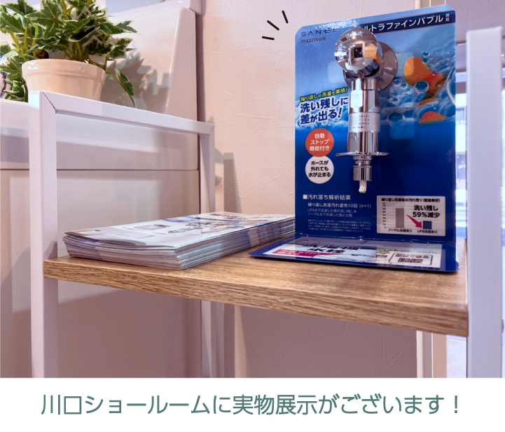 「ウルトラファインバブル水栓って、どんな形?」「今の蛇口とどう違うの?」と気になった方は、ぜひ嶋澤啓工務店の川口ショールームへお越しください。