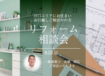 【無料相談会】リニューアルした川口ショールームで理想のリフォームを叶える!一級建築士がお悩みを解決 平素より、株式会社嶋澤啓工務店のウェブサイトをご利用いただき、誠にありがとうございます。 2024年3月にリニューアルオープンした川口ショールームには、おかげさまで多くのお客様にご来場いただいております。 皆様からの熱いご要望にお応えし、この度、「ショールーム空間展示見学会」と「一級建築士による無料お悩み相談」を兼ね備えた、事前予約制の限定来場枠をご用意いたしました。 リフォームを検討されている方、住まいのお悩みをお持ちの方に、最適な解決策をご提案いたします。 │川口リフォーム相談会の概要 会場: 嶋澤啓工務店 川口ショールーム 日程:1日限定 2025年8月23日(土) 10:00~12:00 / 13:00~17:00 ※ご希望のお時間までご指定いただけます。 ※ご予約状況によりご希望に添えない場合がございます。ご予約フォーム送信後、お電話またはメールにて改めてご案内させていただきます。 │この相談会の3つのメリット 1. リニューアルした川口ショールームで理想の空間を体感 生まれ変わった川口ショールームでは、最新の水回り設備を多数常設展示しております。キッチン、お風呂、洗面台、トイレなど、実物に触れてその機能性やデザインをご確認いただけます。 特にこだわったのは、キッチンとダイニングの空間展示です。 ナチュラル、北欧、インダストリアル、シックの4つの異なるテイストの空間を再現し、内装やインテリアとの調和を体感いただけます。 フローリングや内装材なども実物をご覧いただけるため、リフォーム後のイメージが格段に掴みやすくなります。 理想の住まいを具体的に描くためのヒントが満載です。 2. 一級建築士が直接お家の悩みを無料で解決 「どこから手をつけていいか分からない」 「予算内で理想のリフォームは可能?」 など、住まいに関する疑問や不安は尽きないものです。 当日は、川口ショールームに在籍する一級建築士が、お客様のお困り事を無料で直接お伺いいたします。 水回りのご相談はもちろんのこと、以下のような幅広いお悩みにも対応可能です。 ◇ライフスタイルの変化に伴う間取り変更 ◇二世帯住宅へのリフォーム検討 ◇中古物件購入後のリノベーション ◇その他お住まいに関するあらゆるご相談 気になる中古物件の間取り図やご自宅の図面・お写真をお持ちいただければ、より具体的なリフォームプランや概算費用をお伝えできますので、ぜひご持参ください。 3. 来場予約で嬉しいQUOカードPayプレゼント! 事前にWEBサイトからご来場予約をいただいたお客様には、感謝の気持ちを込めてQUOカードPay1,000円分をプレゼントいたします。 ※既に弊社にお問い合わせ済みのお客様、お電話でのご予約は対象外となりますので、予めご了承ください。 嶋澤啓工務店 川口ショールームで、リフォームの第一歩を踏み出しませんか? 経験豊富なスタッフと一級建築士が、皆様の理想の住まいづくりを全力でサポートいたします。 皆様のお越しをスタッフ一同心よりお待ちしております。 イベント予約はこちらから ▼