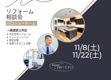 【無料相談会】リニューアルした川口ショールームで理想のリフォームを叶える!一級建築士がお悩みを解決 平素より、株式会社嶋澤啓工務店のウェブサイトをご利用いただき、誠にありがとうございます。 2024年3月にリニューアルオープンした川口ショールームには、おかげさまで多くのお客様にご来場いただいております。 皆様からの熱いご要望にお応えし、この度、「ショールーム空間展示見学会」と「一級建築士による無料お悩み相談」を兼ね備えた、事前予約制の限定来場枠をご用意いたしました。 リフォームを検討されている方、住まいのお悩みをお持ちの方に、最適な解決策をご提案いたします。 │川口リフォーム相談会の概要 会場: 嶋澤啓工務店 川口ショールーム 日程:2日間限定 2025年11月8日(土) 10:00~12:00 / 13:00~17:00 2025年11月22日(土) 10:00~12:00 / 13:00~17:00 ※ご希望のお時間までご指定いただけます。 ※ご予約状況によりご希望に添えない場合がございます。ご予約フォーム送信後、お電話またはメールにて改めてご案内させていただきます。 │この相談会の3つのメリット 1. リニューアルした川口ショールームで理想の空間を体感 生まれ変わった川口ショールームでは、最新の水回り設備を多数常設展示しております。キッチン、お風呂、洗面台、トイレなど、実物に触れてその機能性やデザインをご確認いただけます。 特にこだわったのは、キッチンとダイニングの空間展示です。 ナチュラル、北欧、インダストリアル、シックの4つの異なるテイストの空間を再現し、内装やインテリアとの調和を体感いただけます。 フローリングや内装材なども実物をご覧いただけるため、リフォーム後のイメージが格段に掴みやすくなります。 理想の住まいを具体的に描くためのヒントが満載です。 2. 一級建築士が直接お家の悩みを無料で解決 「どこから手をつけていいか分からない」 「予算内で理想のリフォームは可能?」 など、住まいに関する疑問や不安は尽きないものです。 当日は、川口ショールームに在籍する一級建築士が、お客様のお困り事を無料で直接お伺いいたします。 水回りのご相談はもちろんのこと、以下のような幅広いお悩みにも対応可能です。 ◇ライフスタイルの変化に伴う間取り変更 ◇二世帯住宅へのリフォーム検討 ◇中古物件購入後のリノベーション ◇その他お住まいに関するあらゆるご相談 気になる中古物件の間取り図やご自宅の図面・お写真をお持ちいただければ、より具体的なリフォームプランや概算費用をお伝えできますので、ぜひご持参ください。 3. 来場予約で嬉しいQUOカードPayプレゼント! 事前にWEBサイトからご来場予約をいただいたお客様には、感謝の気持ちを込めてQUOカードPay1,000円分をプレゼントいたします。 ※既に弊社にお問い合わせ済みのお客様、お電話でのご予約は対象外となりますので、予めご了承ください。 嶋澤啓工務店 川口ショールームで、リフォームの第一歩を踏み出しませんか? 経験豊富なスタッフと一級建築士が、皆様の理想の住まいづくりを全力でサポートいたします。 皆様のお越しをスタッフ一同心よりお待ちしております。 イベント予約はこちらから ▼