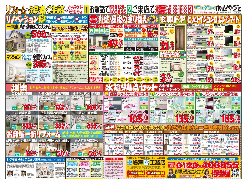 当社は御施主様に「やってよかった!」「嶋澤ありがとう!」のお言葉を頂けるようなご対応や御満足頂ける工事の仕上がりを社員一丸となって目指しております!