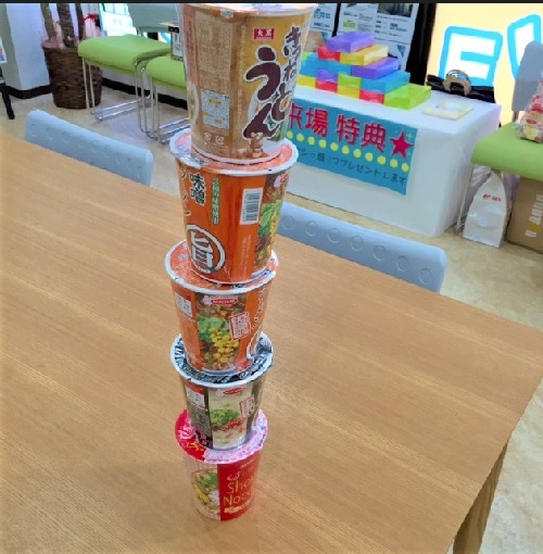 10秒カウントするまでに縦にカップ麺をどれくらい積み上げられるか