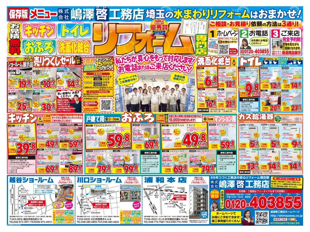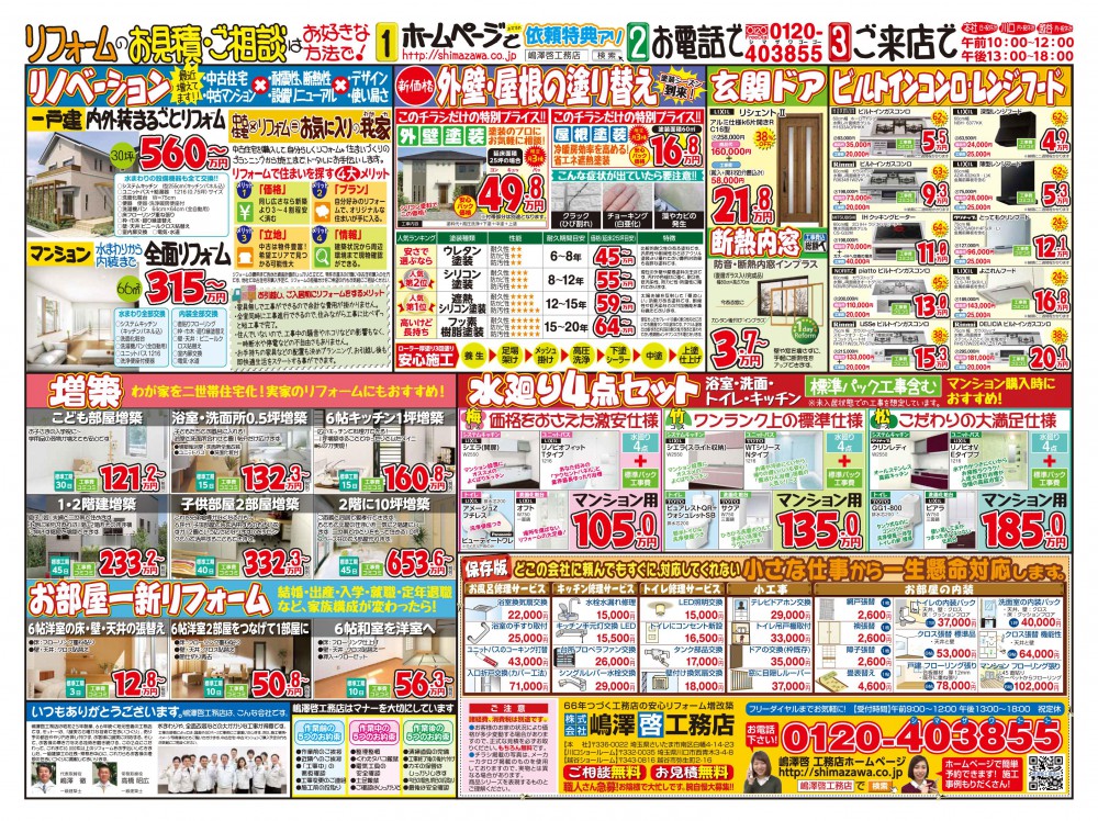 小さくてよくわからない!という方はチラシお送り致しますので、お見積り資料請求フォームhttps://shimazawa.co.jp/contact/のご意見欄に「チラシ希望」とご記入の上お申し込みください。