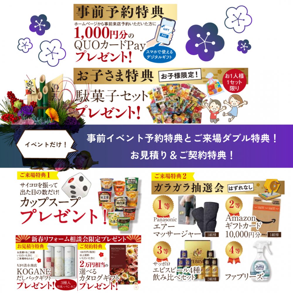 ①来場特典…ガラガラ抽選会★ ハズレなし、もらえてうれしい景品どどーんとご用意! 一組様につき、1回までのチャレンジです。