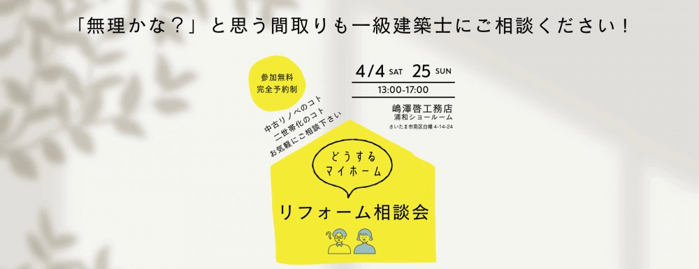 【実物を見て、触れて、相談できる!無料リフォーム相談会 in 嶋澤啓工務店 浦和ショールーム】