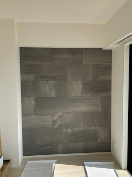 同時にリビングの壁には「エコカラット」を貼らせて頂きました。デザイン性に調湿・脱臭機能が加わったタイルです。電気代を掛けずに空気を整えてくれる優れものです。ぜひ取り入れて見てはいかがでしょうか?