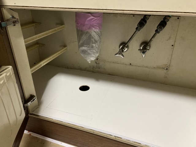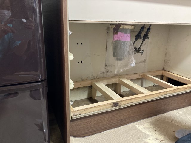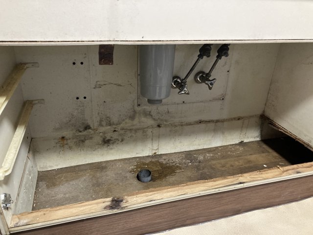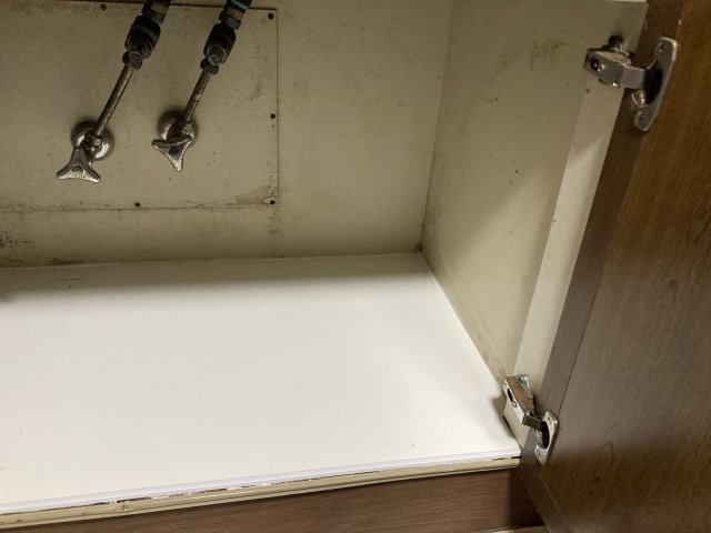 たまにあるのですが、湿気でキッチンの収納部底板がたわんだり、沈んだり。