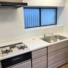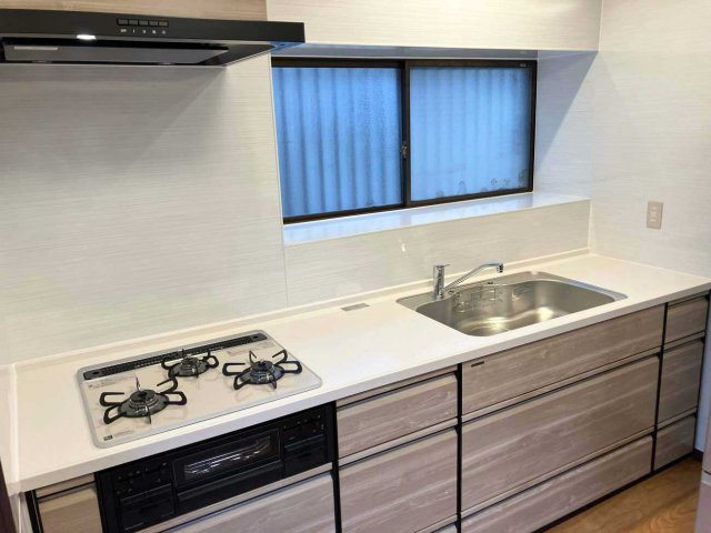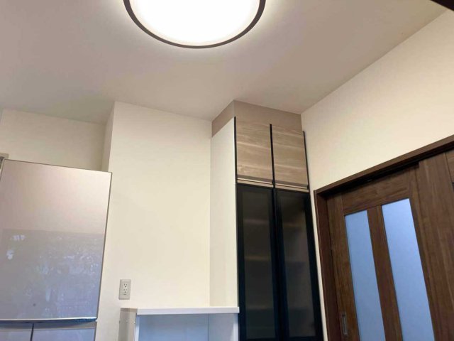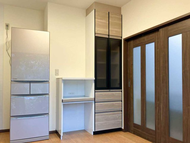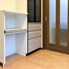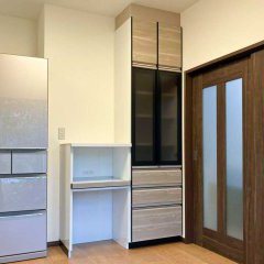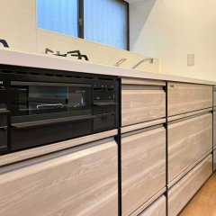 人気のグレージュアッシュカラーを取り入れた高級感あふれるキッチンが、空間を明るく一新しました。