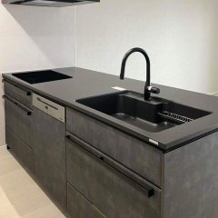 全体をブラックで統一してスタイリッシュな水廻り空間に生まれ変わりました。