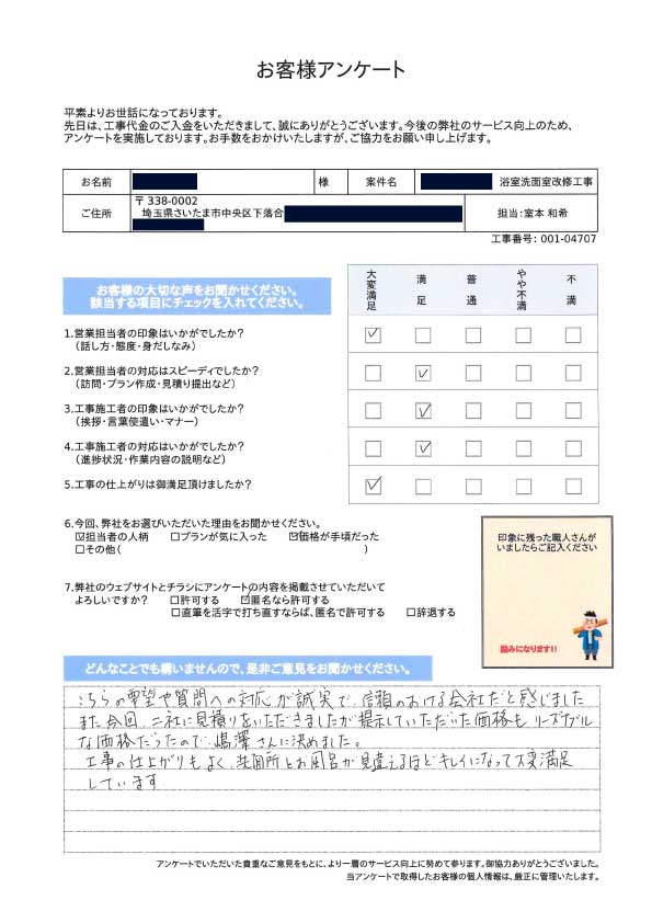マンション 浴室リフォームの工事の御用命をいただきました。