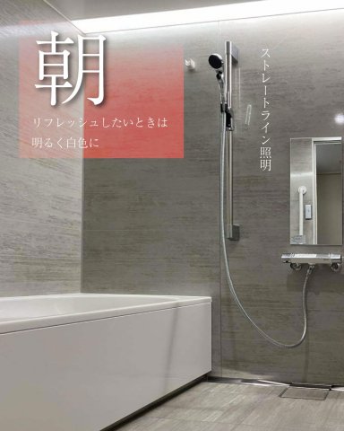 また、調光・調色機能付き照明で朝、リフレッシュしたいときは明るく白色に。