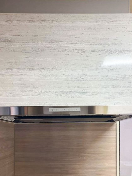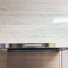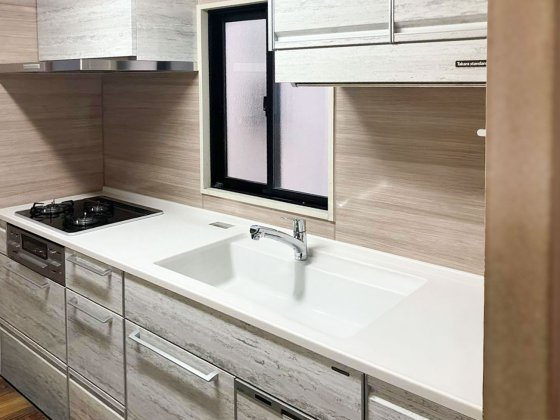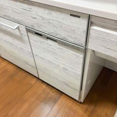 リフォーム前のキッチンは、長年の使用による劣化が目立ち、調理スペースも限られていました。そこで、タカラスタンダードの「トレーシア」シリーズを採用し、扉はフロウストーングレー、ワークトップはアクリル人造大理石のソリッドホワイトをご選択。これにより、キッチン全体が明るく清潔感のある空間に生まれ変わりました。また、ホーロークリーンキッチンパネル(色:エルムナチュラル)を使用することで、掃除がしやすく、耐久性も抜群です。さらに、食器洗い乾燥機やホーローレンジフードも設置し、機能性と利便性を大幅に向上させました。