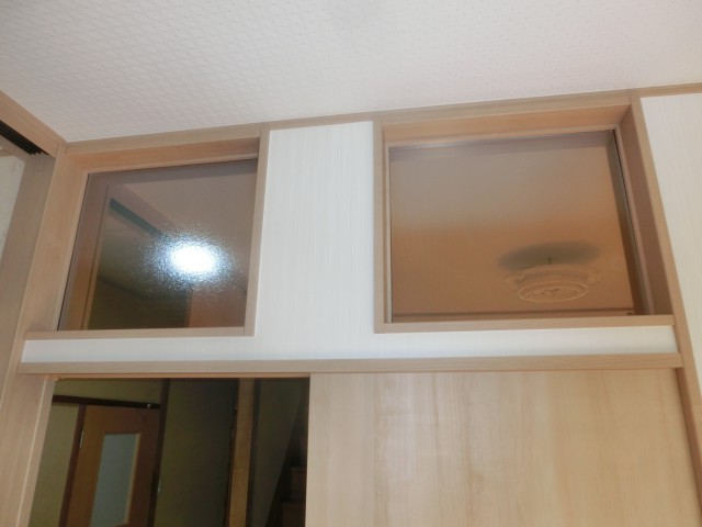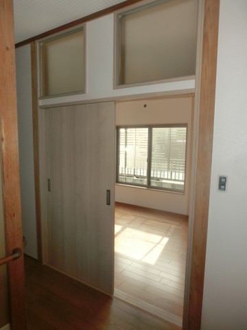 廊下が暗くなってしまうため、扉の上部にお施主がご用意したガラス窓を壁に組込み、明るさを確保。