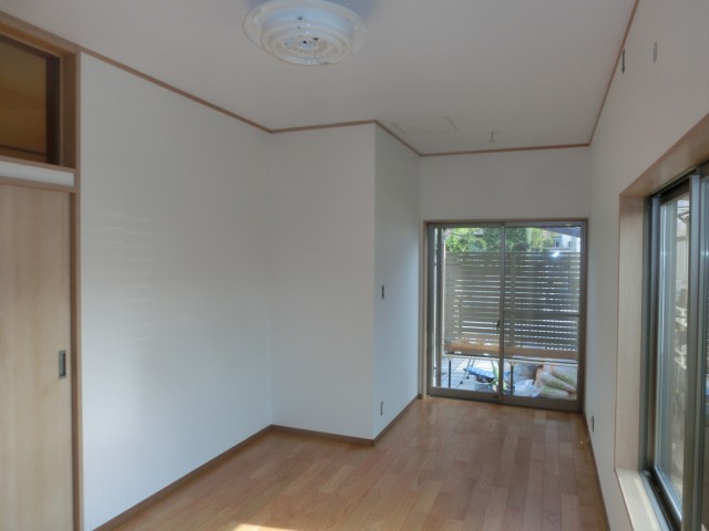壁は柱を隠してクロス張りに。更に耐震補強と断熱材充填を行い、安心面と断熱性を高めました。