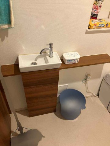介護用2畳程度の大きさから1.3畳程度に便器の位置を90度回転させて設置しました。