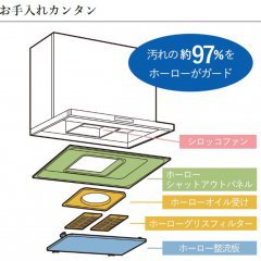 「レンジフードのお掃除って、本当に大変…」そんなお悩みを解決するのが、このホーロークリーンレンジフードです。油汚れがこびり付きにくいホーロー素材だから、普段のお手入れはサッと拭くだけでOK!