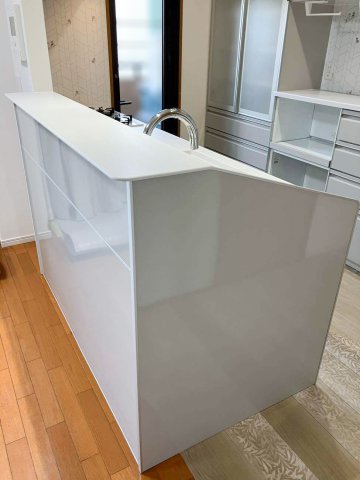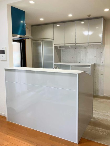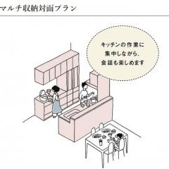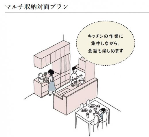 今回採用したのは、タカラスタンダードの「マルチ収納対面プランI型 造作壁対応タイプ」。シンク前の立ち上がりが、ダイニング側からの手元を隠し、キッチン部分をゆるやかに区切ることで、リビングとの一体感を保ちながらも、生活感を抑えた空間を実現します。