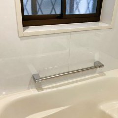 さいたま市南区にお住まいの戸建てオーナー様邸にて、浴室リフォームおよび窓のインプラス取り付け工事を実施いたしました。以前の浴室を一新し、全体をベージュ系の落ち着いたトーンでまとめた、上品で高級感あふれるバスルームへと生まれ変わりました。アクセントには温かみのあるパティオベージュのパネルを採用し、空間に深みを与えています。