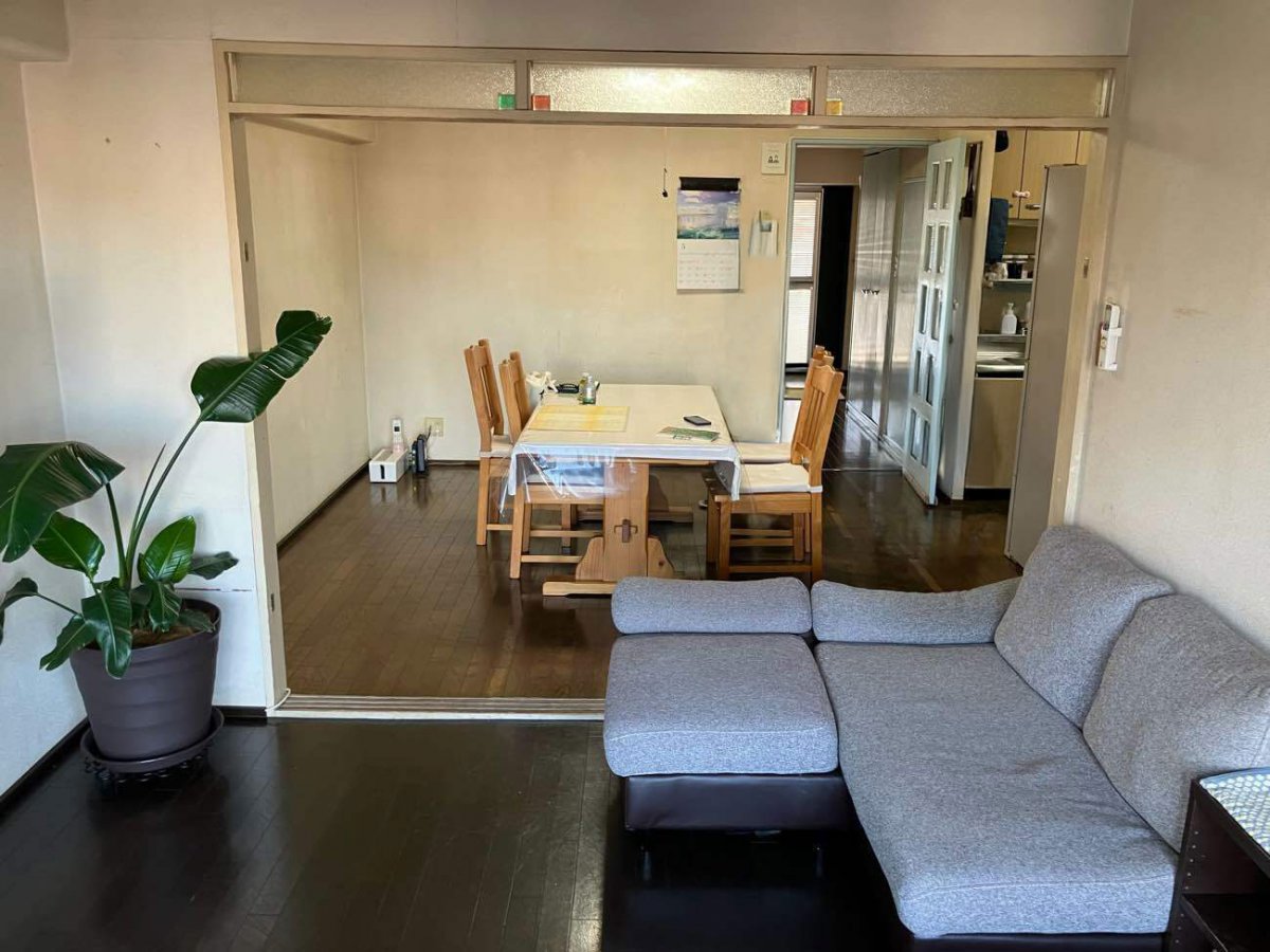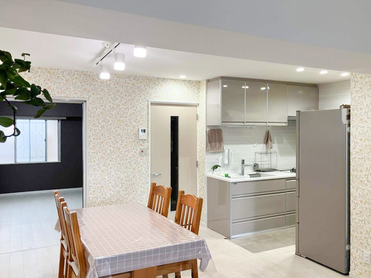 工事内容:床(塩ビシート撤去、L45フローリング貼り)、巾木交換、壁・天井クロス貼り、内装ドア・クローゼット建具交換、吊戸棚造作