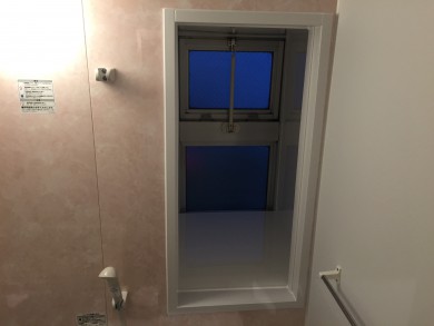 今回の浴室改修の工事のポイントは色々ございましたが、特に出窓の奥行のある(約70cm)箇所をいかに綺麗に納めるかという所に気を配らせて頂きました。