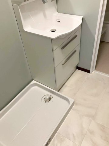 ■洗面化粧台: TOTOのオクターブスリムを採用。限られたスペースでもゆったり使えるスリムなカウンターが特徴で、収納力の高い2段引き出しタイプを選定しました。