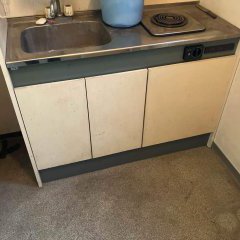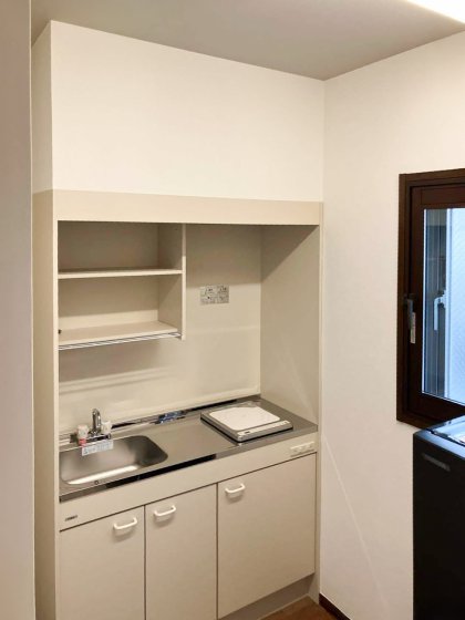■キッチン: 限られたスペースでも使いやすい、LIXILのミニキッチンを設置しました。間口120cmのコンパクトなサイズながら、収納力も確保しています。