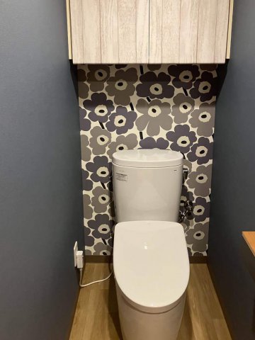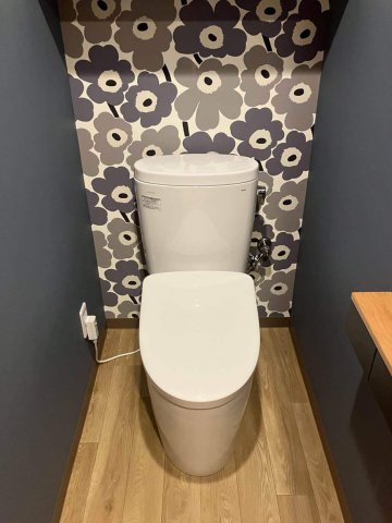 タンクから水が漏れていると弊社にご相談いただきました。当初はウォシュレット交換のみのご検討でしたが、この機会にレストルーム全体を交換・改修する工事となりました。内装も一新することで、一気に北欧デザインが光る、明るく楽しい空間へと生まれ変わりました。