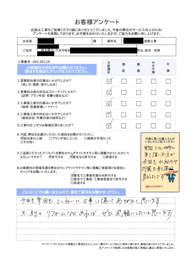 さいたま市・川口市・蕨市・戸田市・越谷市・草加市で戸建てやマンションの水回りリフォーム、内装工事、外壁塗装、住まいのお困りごとはございませんか?嶋澤啓工務店が、お客様のご要望に寄り添い、誠実さと確かな技術で理想の住まいを実現します。お見積もり・ご相談は無料ですので、まずはお気軽にお問い合わせください。