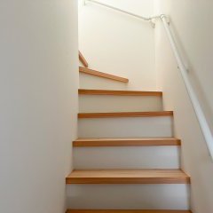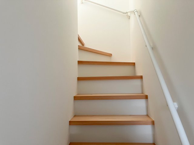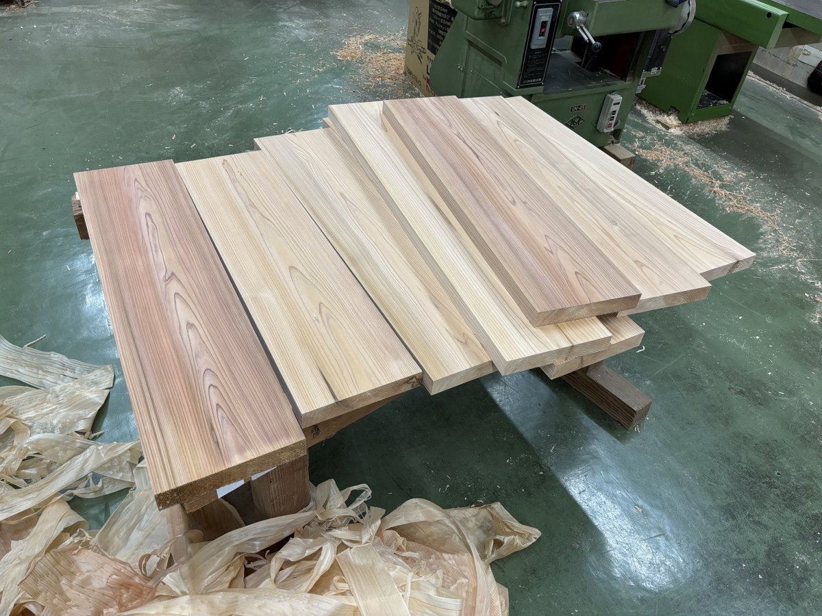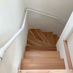 階段には、材木屋さんが3~5年かけて自然乾燥させた杉板を使用しました。木材を機械ではなく自然乾燥させることで、ひび割れしにくく、木の持つ本来の強さが活きています。