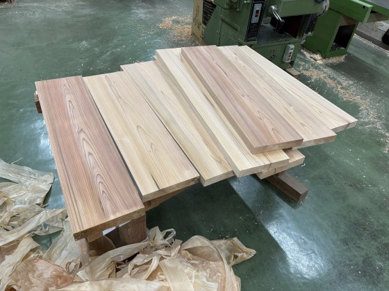 厚さ45mmの杉板を39mmに削り出す繊細な加工を行い、最後にオスモカラー(赤ちゃんやペットが舐めても安心な自然塗料)を丁寧に塗布。塗料が木材の内部に染み込むことで、汚れを防止しつつ、木の呼吸を妨げない、安心安全な仕上がりとなっています。