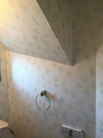 長年使用していたトイレがクロス・床(クッションフロア)をトイレと一緒に変えたため 明るい印象になりました。