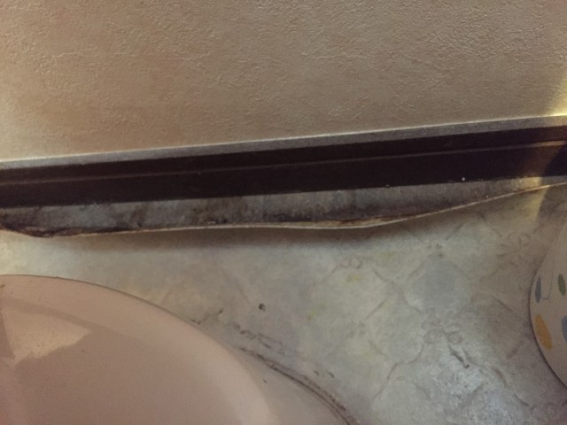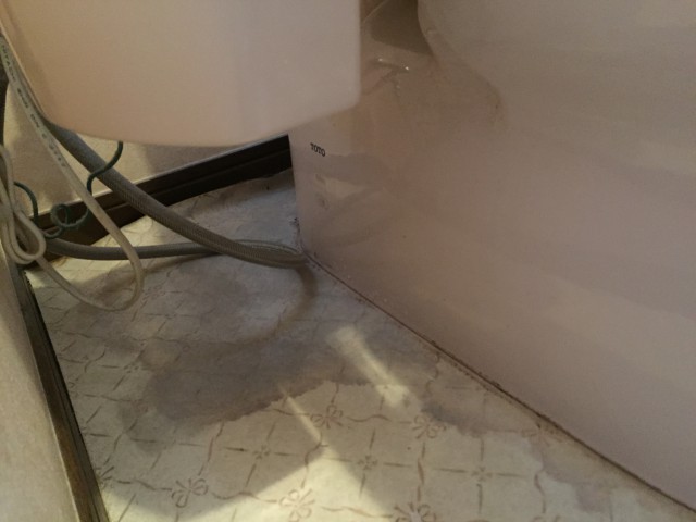 初回訪問時の時にはもうすでに水漏れにより床のクッションフロアにしみができ