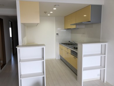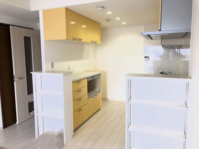リビングダイニングとキッチンの間の壁を撤去しました。