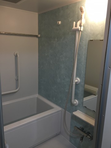洗面室から浴室へのまたぎも下がり、手摺を2本取り付け、高齢の方にも使いやすい