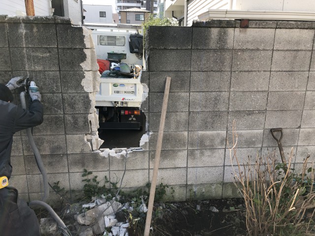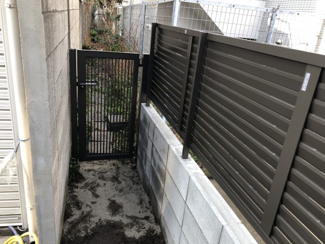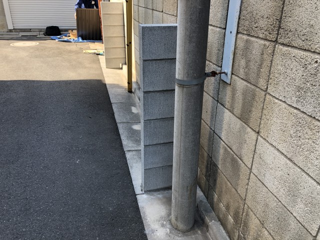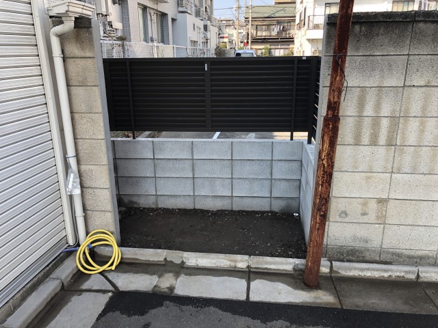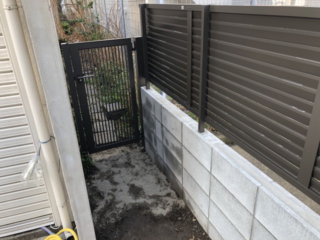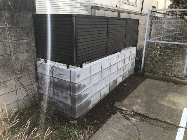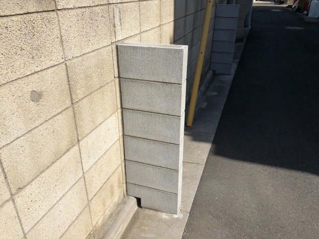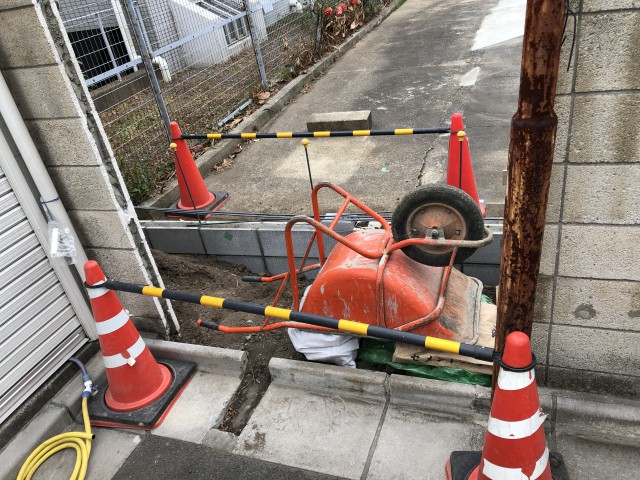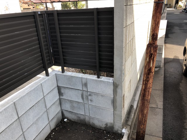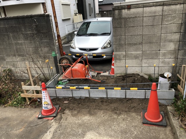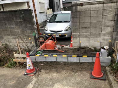 土地境界線を活かし、門扉、フェンスを新規に外構工事するに当たり、既存のブロック塀一部を撤去した後の袖壁を補強する事が必要になり、横筋を溶接して鉄筋を延長してから新規にブロック塀を設置致しました。(←今回の外構工事のポイント)