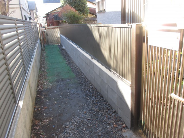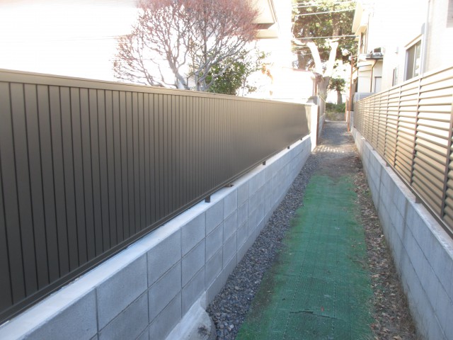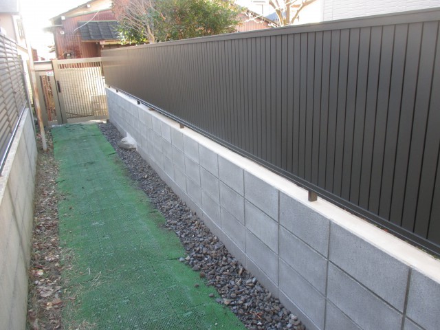 ②前回のようにすべてブロックにせず、上部をアルミフェンスにして上部を軽くつくり、耐久性にも考慮をしました