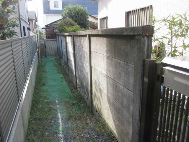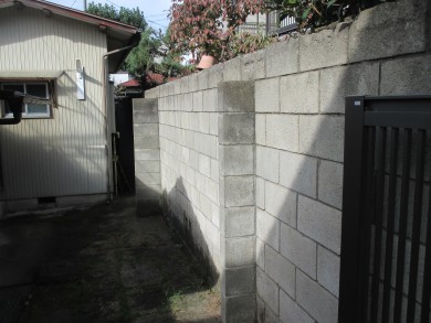 ①築40年以上たってしまったブロック塀と万年塀は風化がひどく、傾き、隙間も見られた