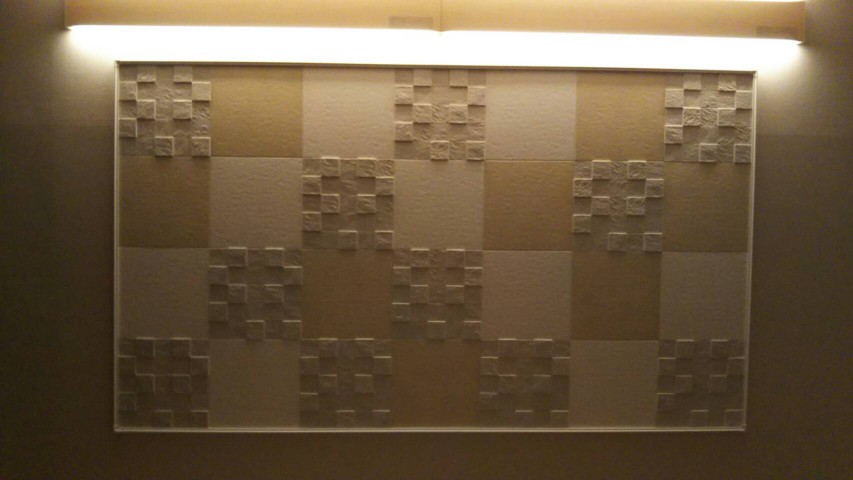 余ったエコカラットは廊下にアクセントとして張りました。
