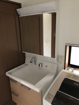 洗面化粧台はリクシルのピアラを使用