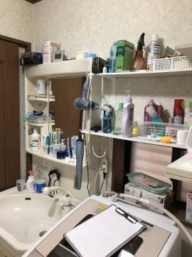 一面鏡の棚の小物を三面鏡の中に収納して見た目がスッキリしました。