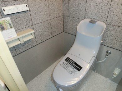 お時間を掛けて選ばれた壁材と床材が、グレーのトイレにとてもマッチ致しました。