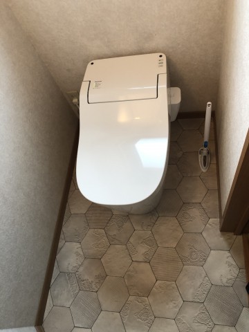 お客様の御選び頂いた床でイメージも変わりトイレがお住まいの良いアクセントとして生まれ変わりました。