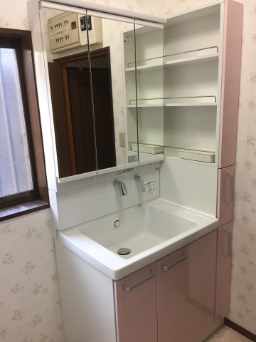 洗面化粧台は収納量を増やしたためすっきりしました。