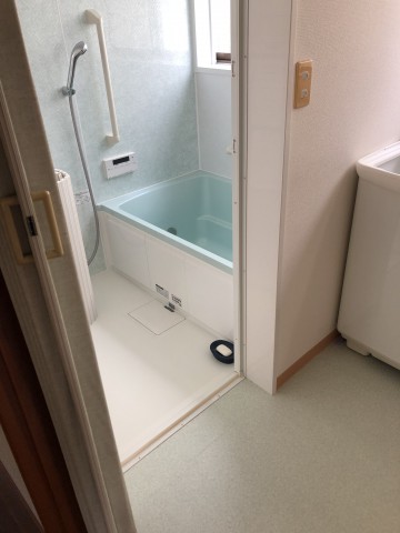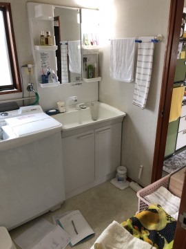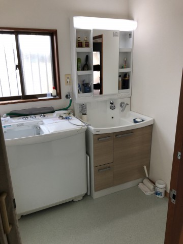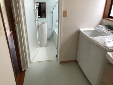 在来工法の浴室からユニットバスへの交換工事と洗面化粧台、洗面室の内装工事を行わせて頂きました。在来の浴室は冬寒いのでユニットバスへの交換で改善されます。洗面室も床が撓んでいた為、床の合板の貼り替えも行い改善しました。