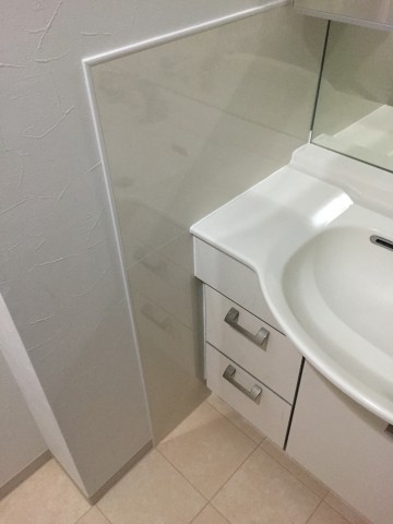 キッチンパネルを張り、水はねしても簡単に拭き取れるようになりました。