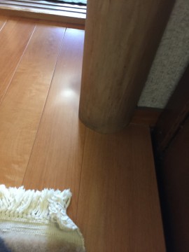 玄関の丸柱は、フローリングの厚さの分だけ掘り込みました。