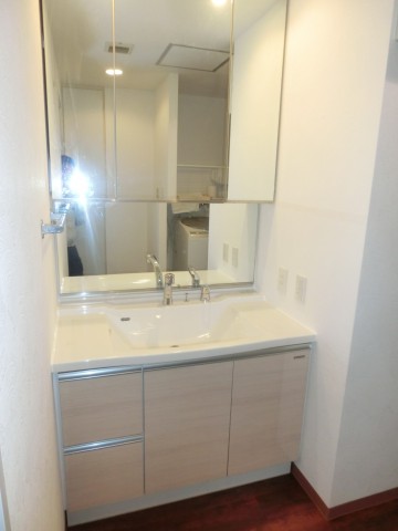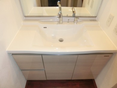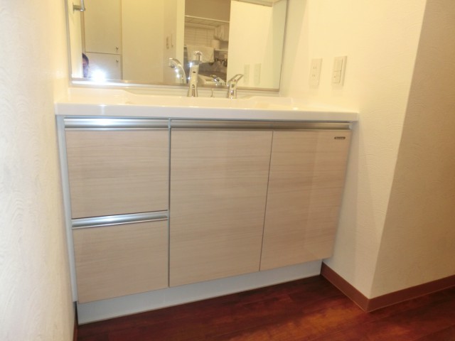 マンションではスペースに合わせて作られた洗面台が設置されているケースが多いのですが、サイズオーダーであればピッタリに収めることができ、規格サイズでは隙間が少し空いてしまうなどの問題もクリアできます。
