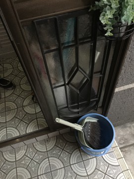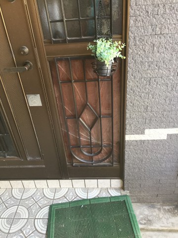 割れてしまった玄関ドアの袖ガラス。